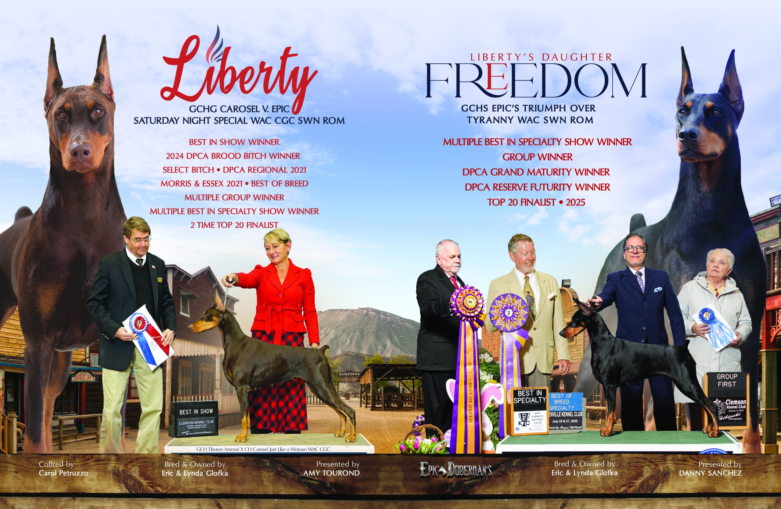 Liberty was bred by Eric Glofka of Epic Dobermans & Carol Petruzzo of Carosel Dobermans.